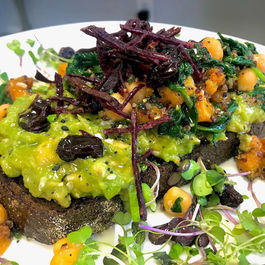 farro & red quinoa dressed in lemon vinaigrette, butternut squash, pickled onions, marinated chick peas, cucumber, green apple, cherry tomato, arugula, sweet potato, sunflower seeds, house made buttermilk herb dressing
